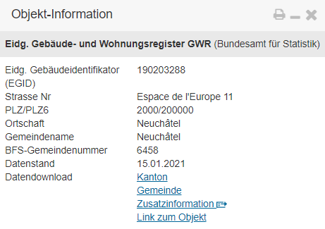 - Amtliche Gebäudenummer (über die ganze Schweiz eindeutige Gebäude-ID)